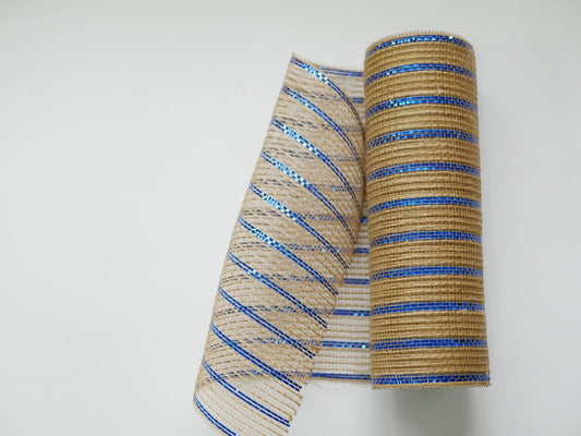 Natural Burlap Royal Metallic Stripe Holiday Deco Mesh - ( 10 Inch x 10 Yards )