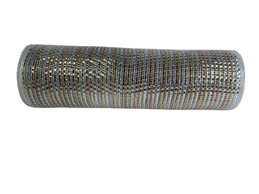 BLING SHINY METALLIC Natural Color Striped Deco Mesh - Holiday Deco Mesh - ( 10 Inch x 10 Yards )