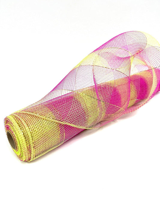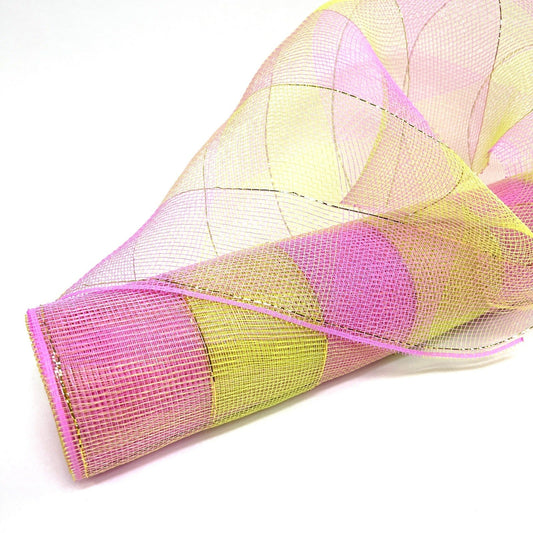 Pink Green - Deco Mesh Two Color Design - ( 21 Inch x 10 Yards )