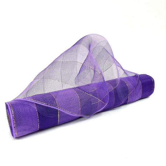 Purple with Gold Lines - Deco Mesh Eyelash Metallic Stripes - (21 Inch x 10 Yards)