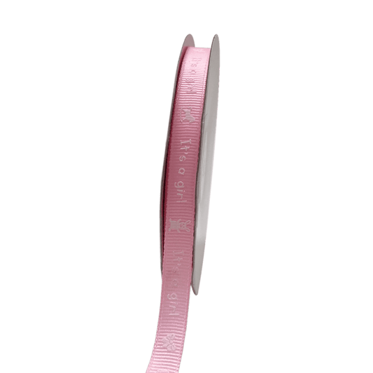 Fuchsia - It's a girl - Grosgrain Ribbon Baby Design ( W: 3/8 Inch | L: 25 Yards )