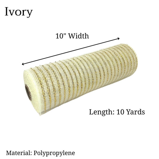 Pre-Order Now & Ship On February 27th - Ivory - Deco Mesh Metallic Stripes - ( 10 Inch x 10 Yards )