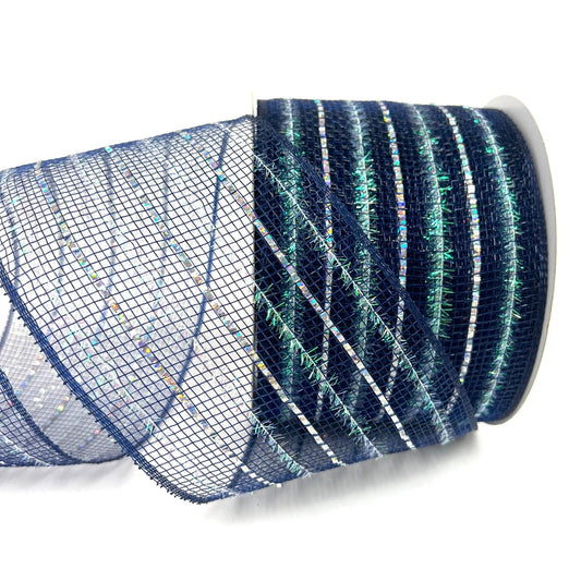 Navy - Laser Metallic Mesh Ribbon - ( 4 Inch x 25 Yards )