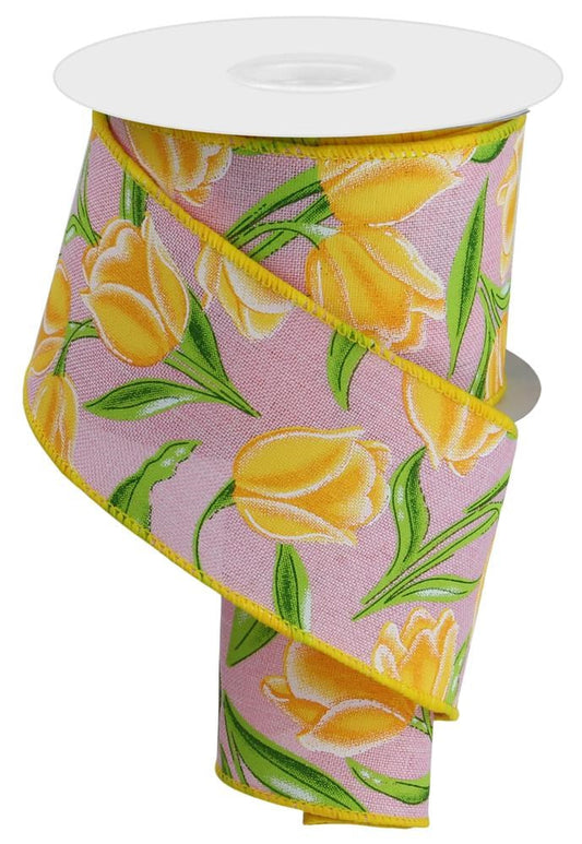 Yellow Bee White Daisy Flower Light Pink Spring Wired Edge Ribbon - ( 2-1/2 Inch | 10 Yards )