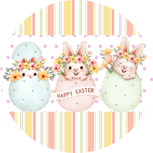 Bunny's with Easter Eggs Happy Easter Accent Sign - Made in USA