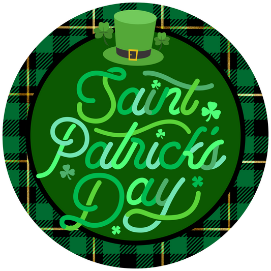 Happy St. Patrick's Day Shamrock Plaid Accent Sign - Made in USA