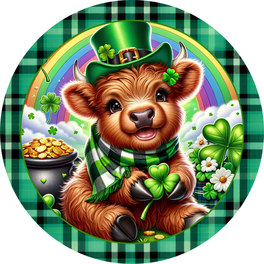 Saint Patrick's Day Highland Baby Cow Accent Sign - Made in USA