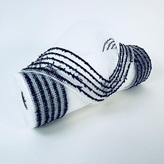 Black with White Stripes Holiday Deco Mesh - ( 10 Inch x 10 Yards )