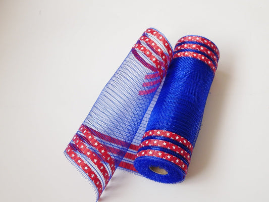 Royal Blue with Red Stars Stripes Holiday Deco Mesh - ( 10 Inch x 10 Yards )