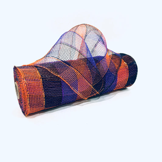 Purple Orange Black - Poly Deco Mesh with Laser Mono Stripe - ( 10 Inch x 10 Yards )