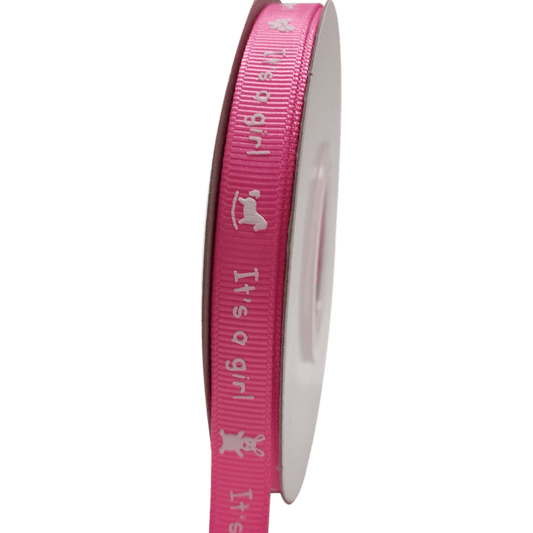 Fuchsia - It's a girl - Grosgrain Ribbon Baby Design ( W: 3/8 Inch | L: 25 Yards )