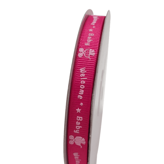 Fuchsia - Welcome Baby - Grosgrain Ribbon Baby Design ( W: 3/8 Inch | L: 25 Yards )