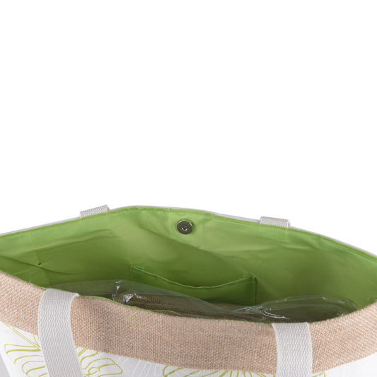 21 in. x 16 in. Green leave Print Tote Bag for Women for Women Swim Pool Bag Large Tote