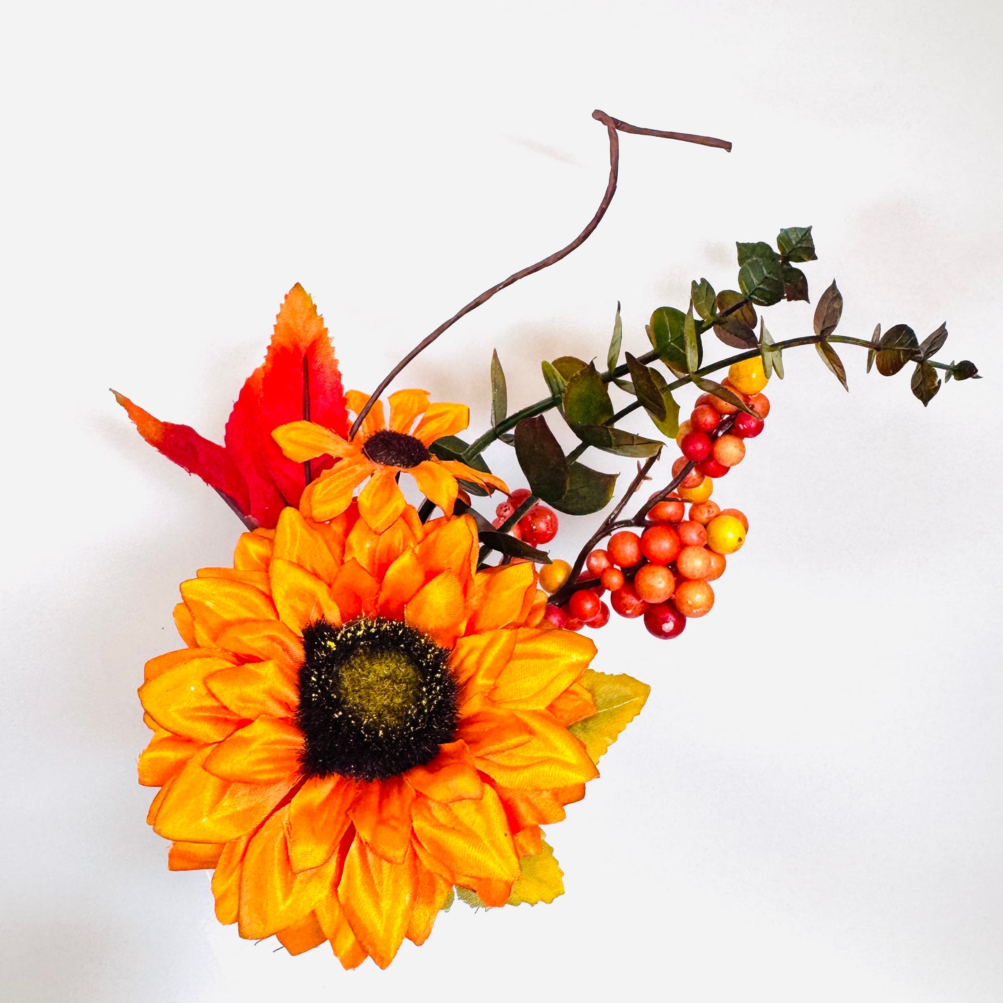 Vibrant Sunflower Design: Bright sunflowers paired with berries and autumn leaves for a cheerful fall aesthetic.