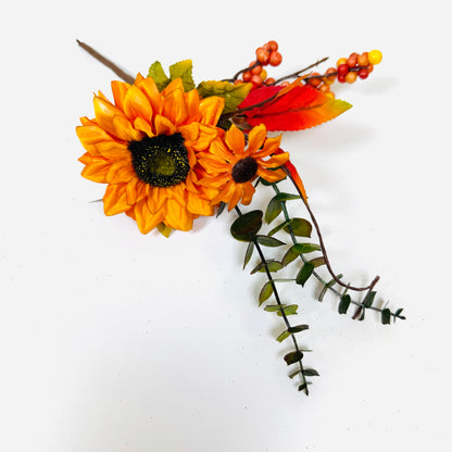 Welcome the warmth and beauty of autumn into your home with the 11” Sunflower & Berry Fall Picks. These vibrant, seasonal accents are perfect for enhancing your fall décor, adding a touch of nature-inspired charm to your arrangements. Each pick features a bright sunflower surrounded by lush greenery, berries, and fall leaves in shades of orange, yellow, and red. The combination of colors and textures creates a festive and inviting look that’s ideal for centerpieces, wreaths, garlands, or even as part of your Thanksgiving table setting.