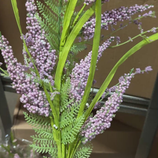 Bring a touch of natural elegance to your floral arrangements with the 26 Inch Heather Spray. This delicate spray features lifelike clusters of small, soft blooms paired with textured greenery, mimicking the natural beauty of real heather. With its graceful stems and subtle detailing, this spray is perfect for adding height, texture, and charm to your designs.