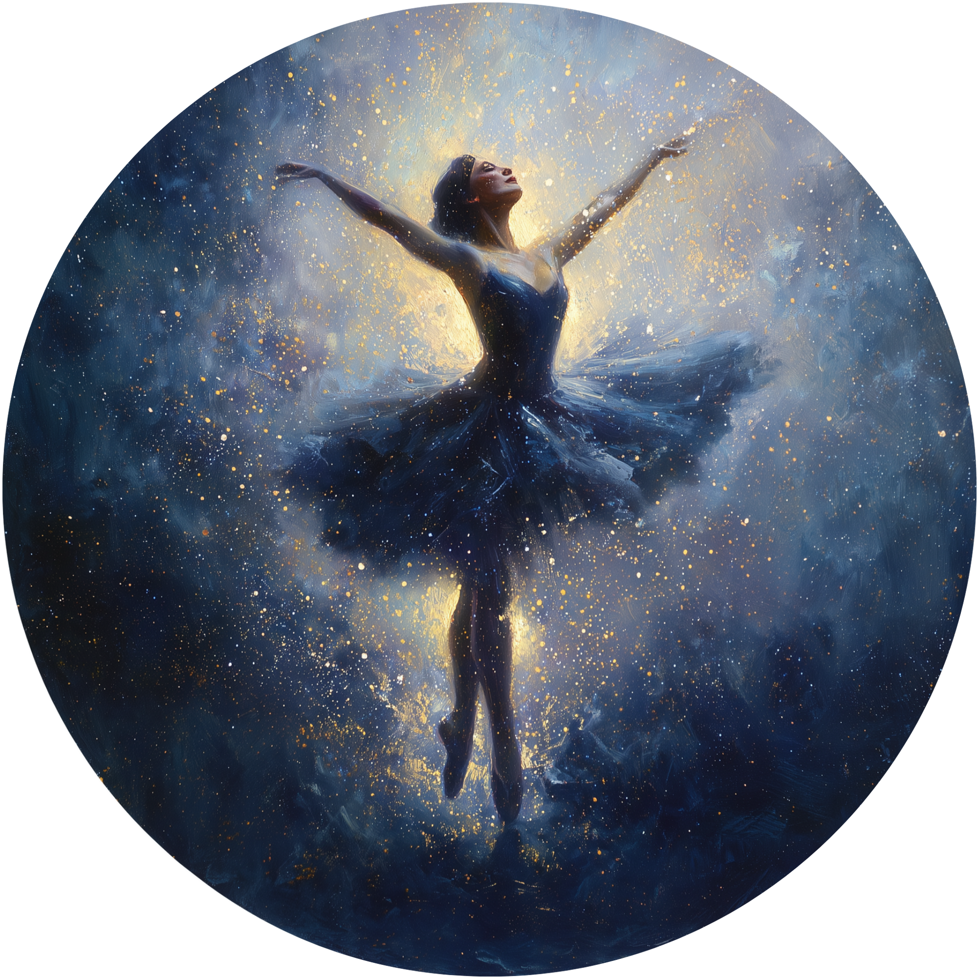 Ballerina Dancing in a Dark Blue Tutu with Golden Sparkles Accent Sign - Made in USA