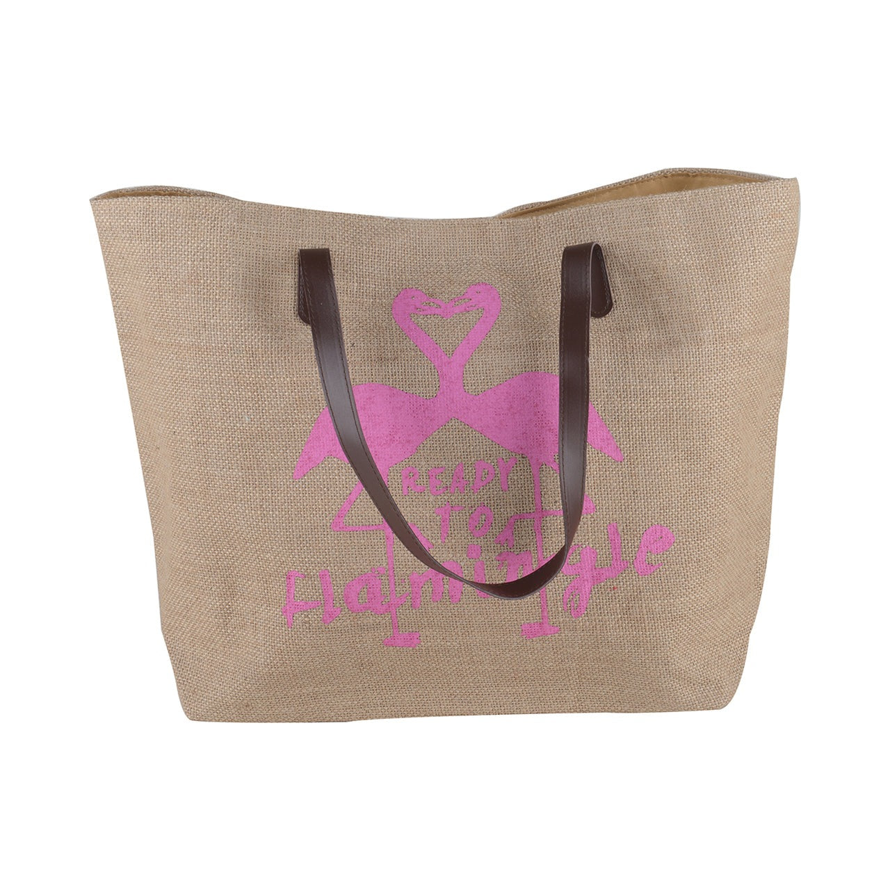 21 in. x 15 in. Pink Flamingo Canvas Beach Tote Bag for Women Swim Pool Bag Large Tote