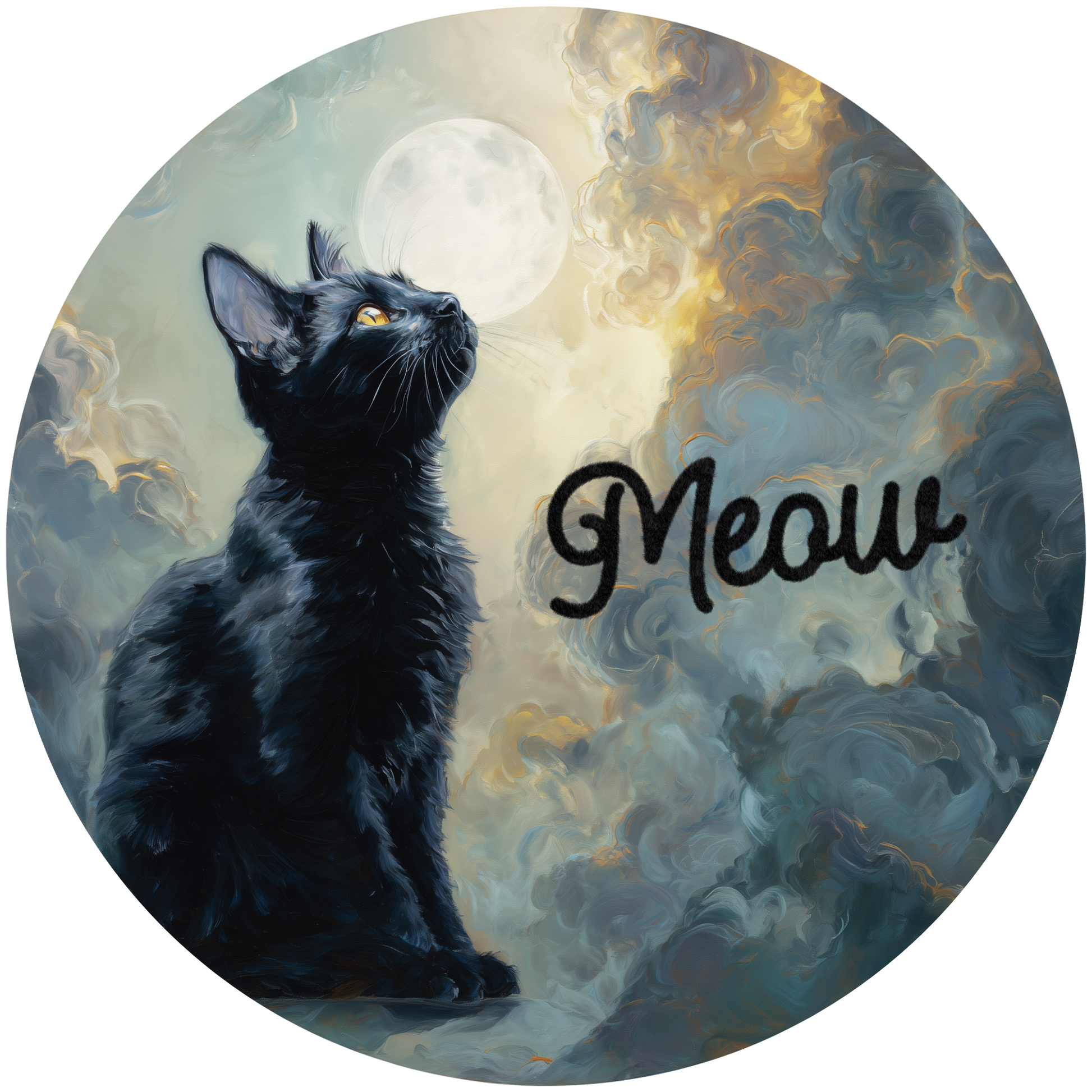 Black Cat Meow with Full Moon Accent Sign - Made in USA