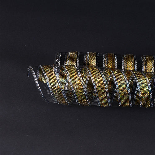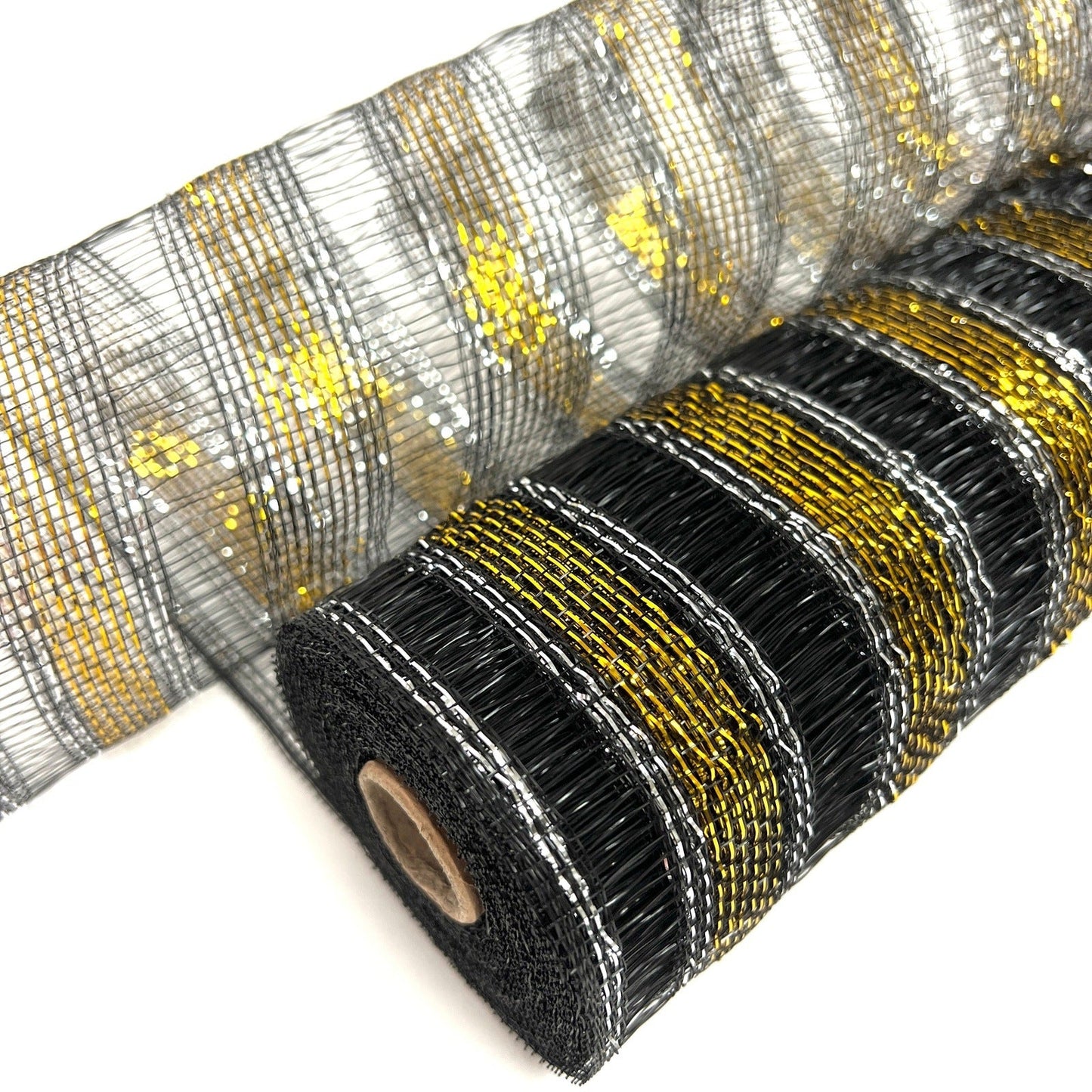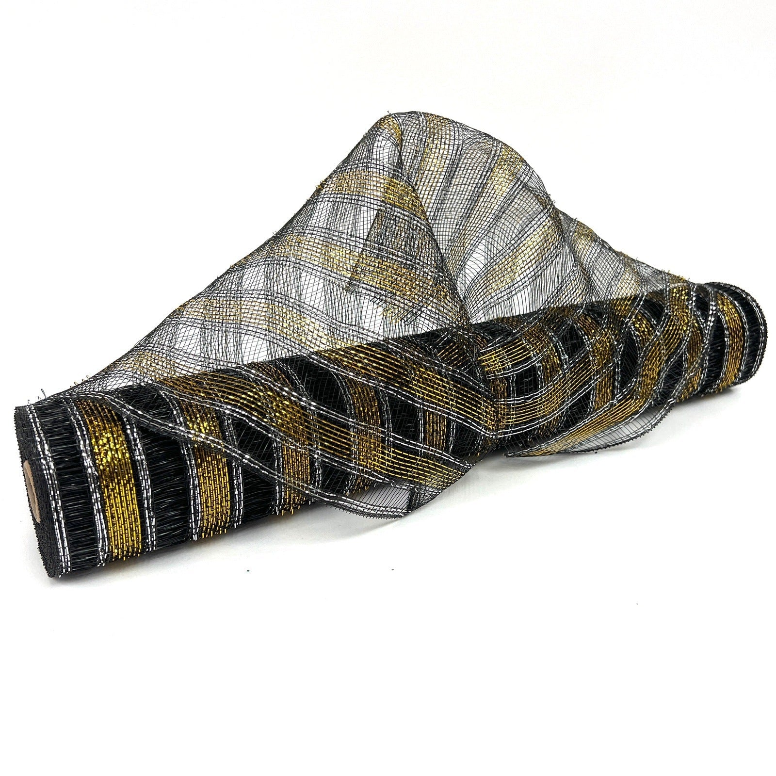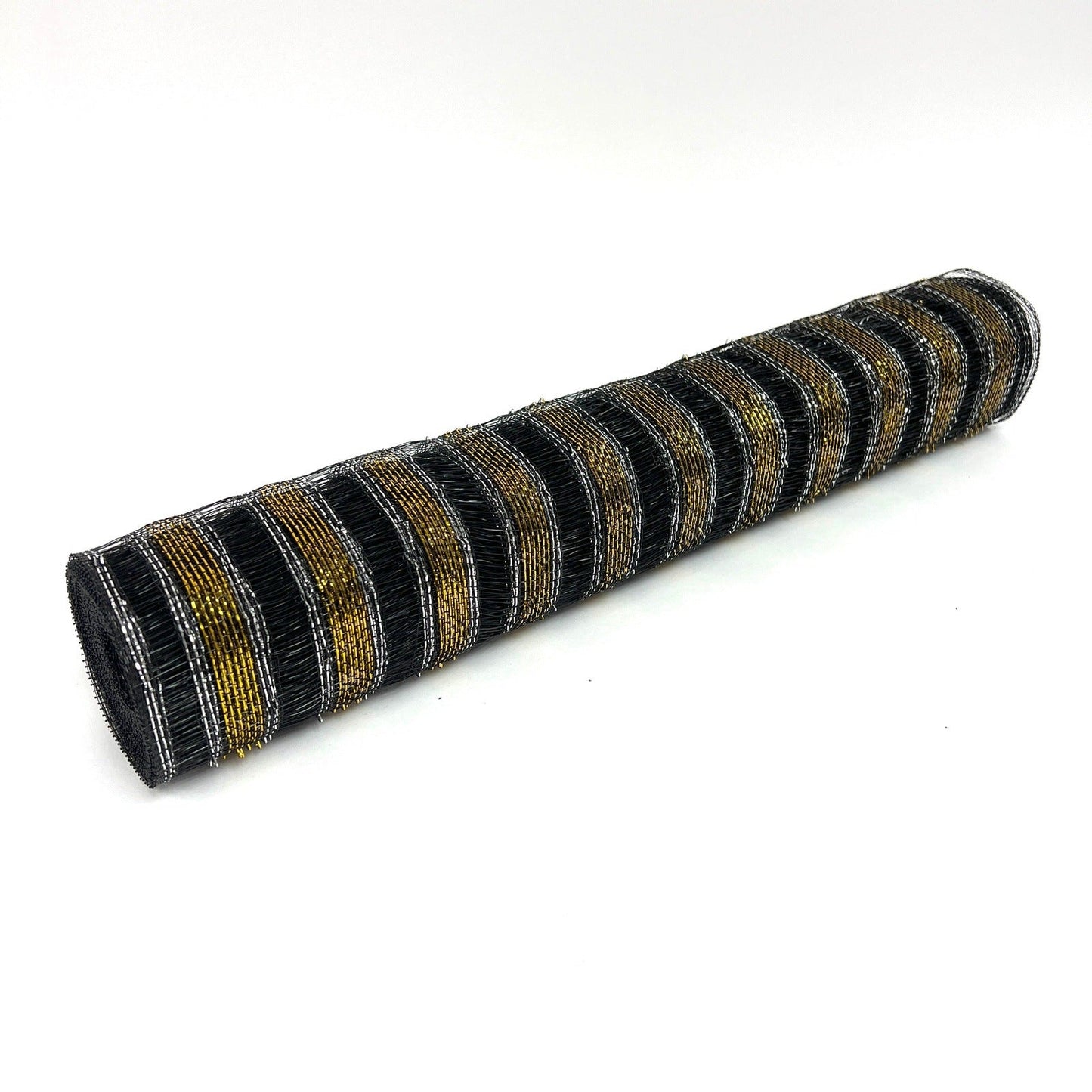 Black - Deco Mesh Eyelash Metallic Stripes - (21 Inch x 10 Yards)