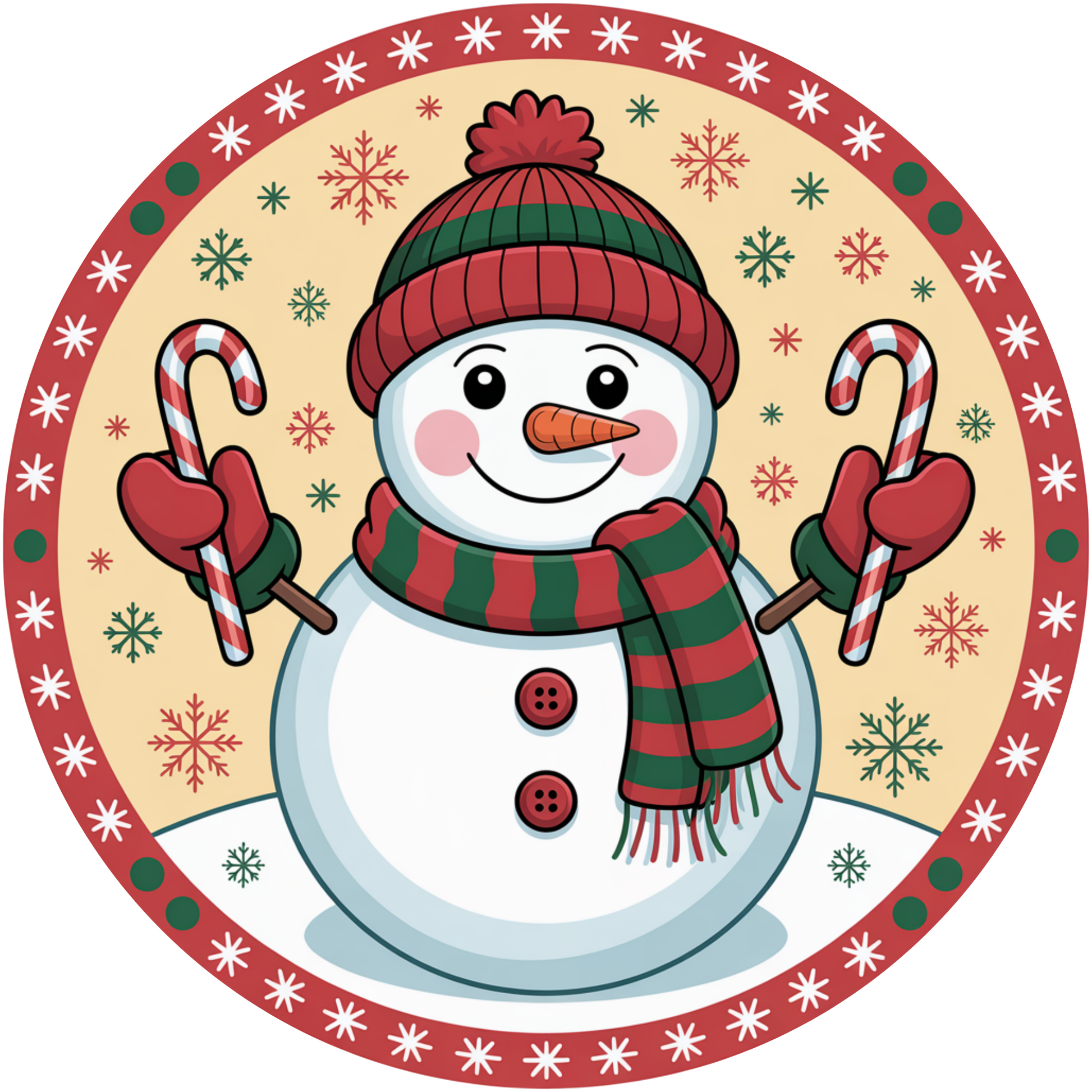 Cheerful Snowman with Candy Canes Winter Accent Sign - Made in USA