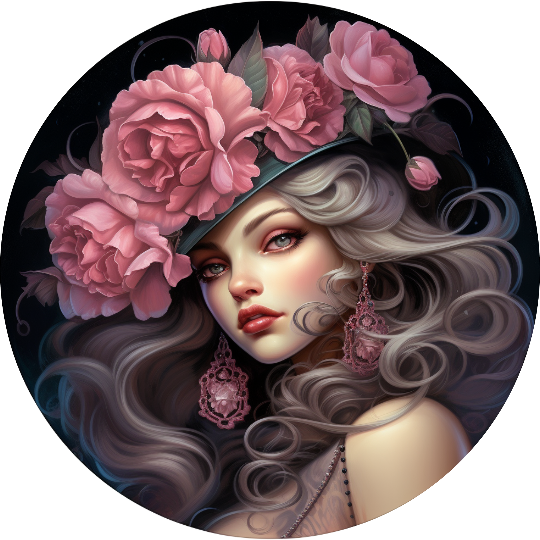 Cute Girl with Hat Flower Accent Sign - Made in USA