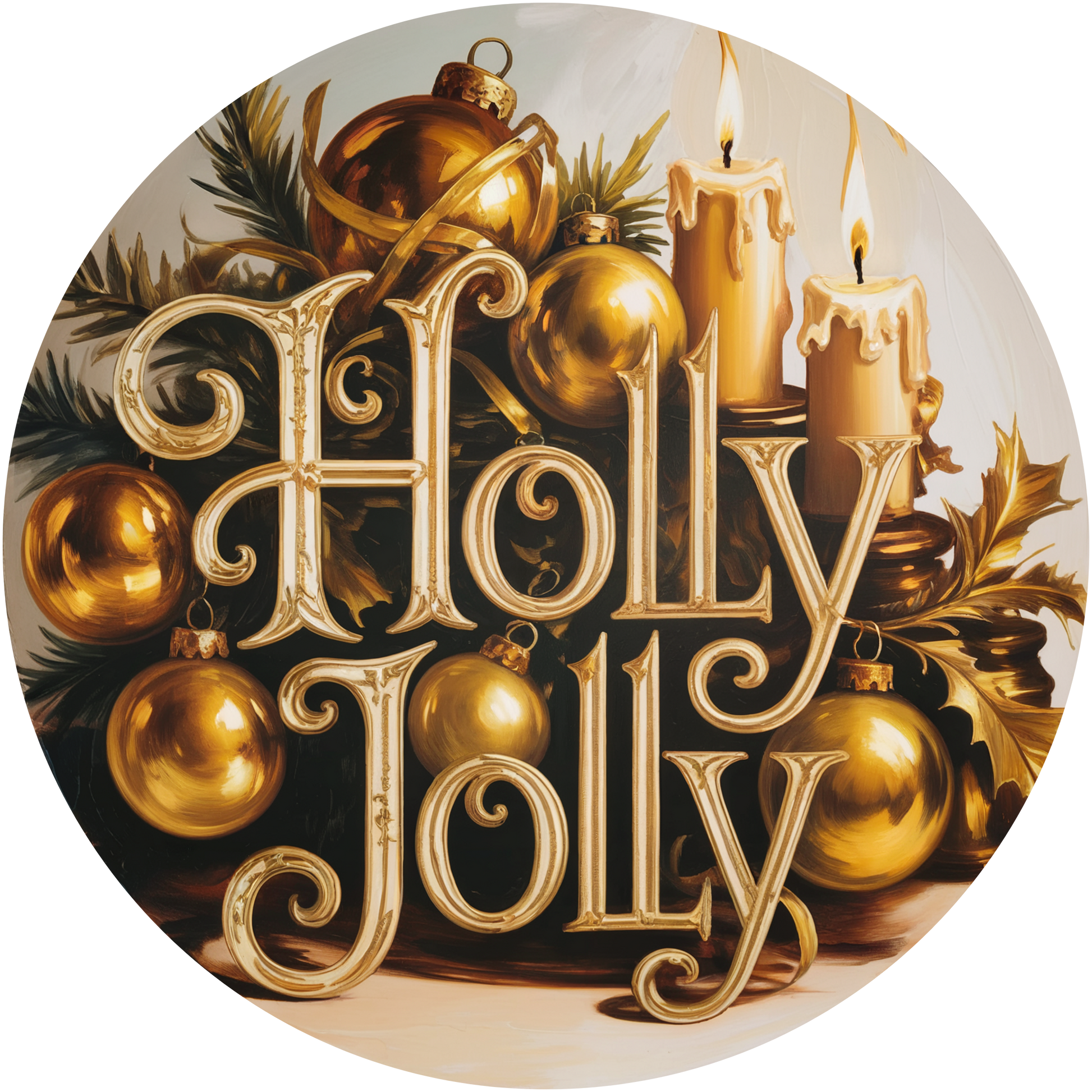 Holly Jolly Gold Ornament Accent Sign - Made in USA
