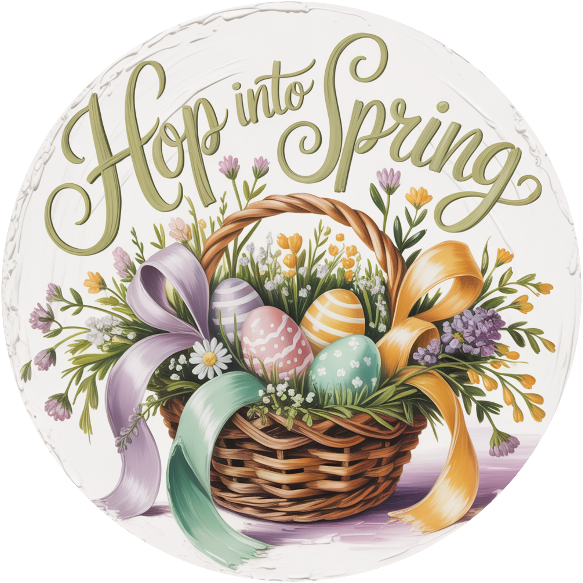 Hop Into Spring Easter Basket Accent Sign - Made in USA
