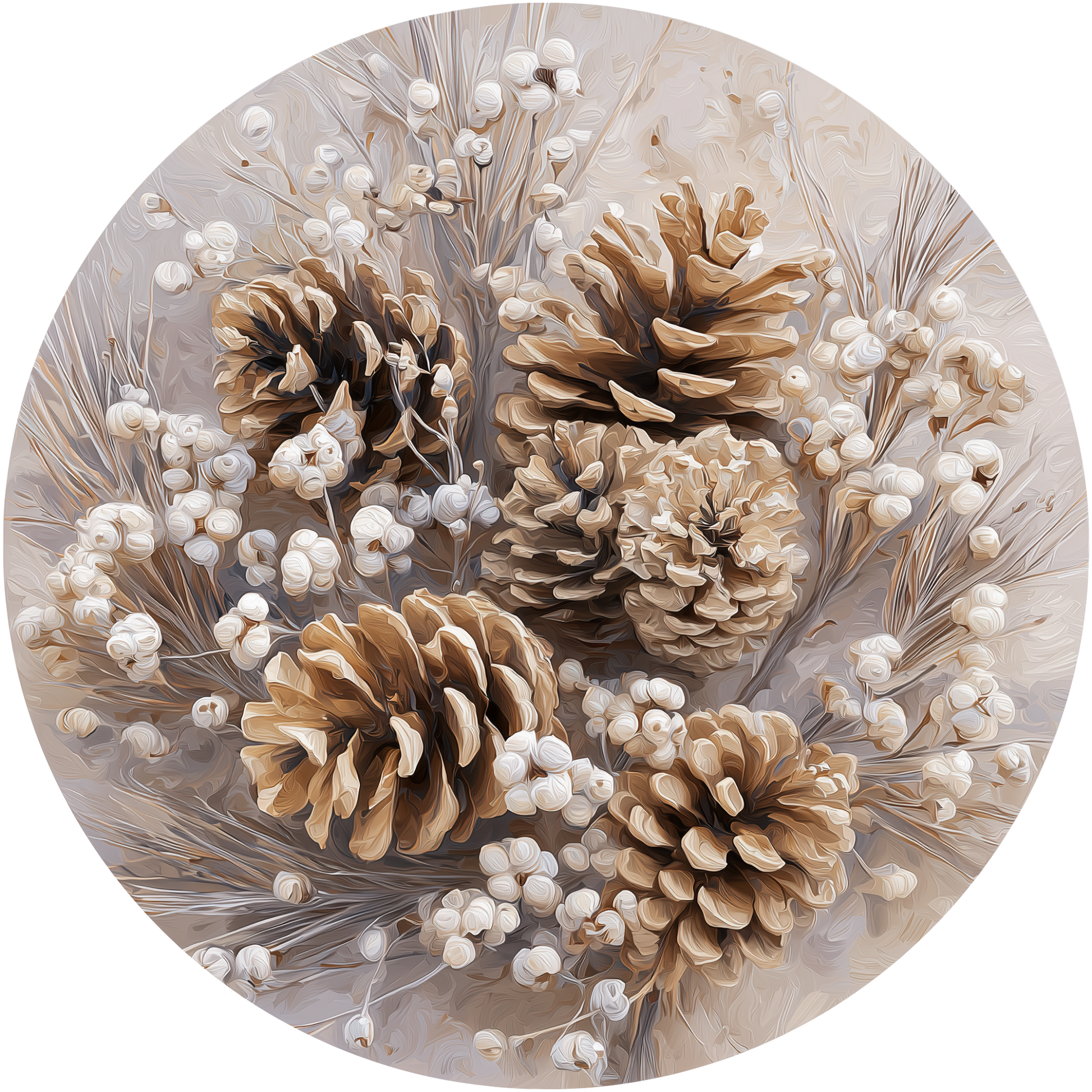 Neutral Tone Winter Arrangement with Pine Cones and White Berries Accent Sign - Made in USA