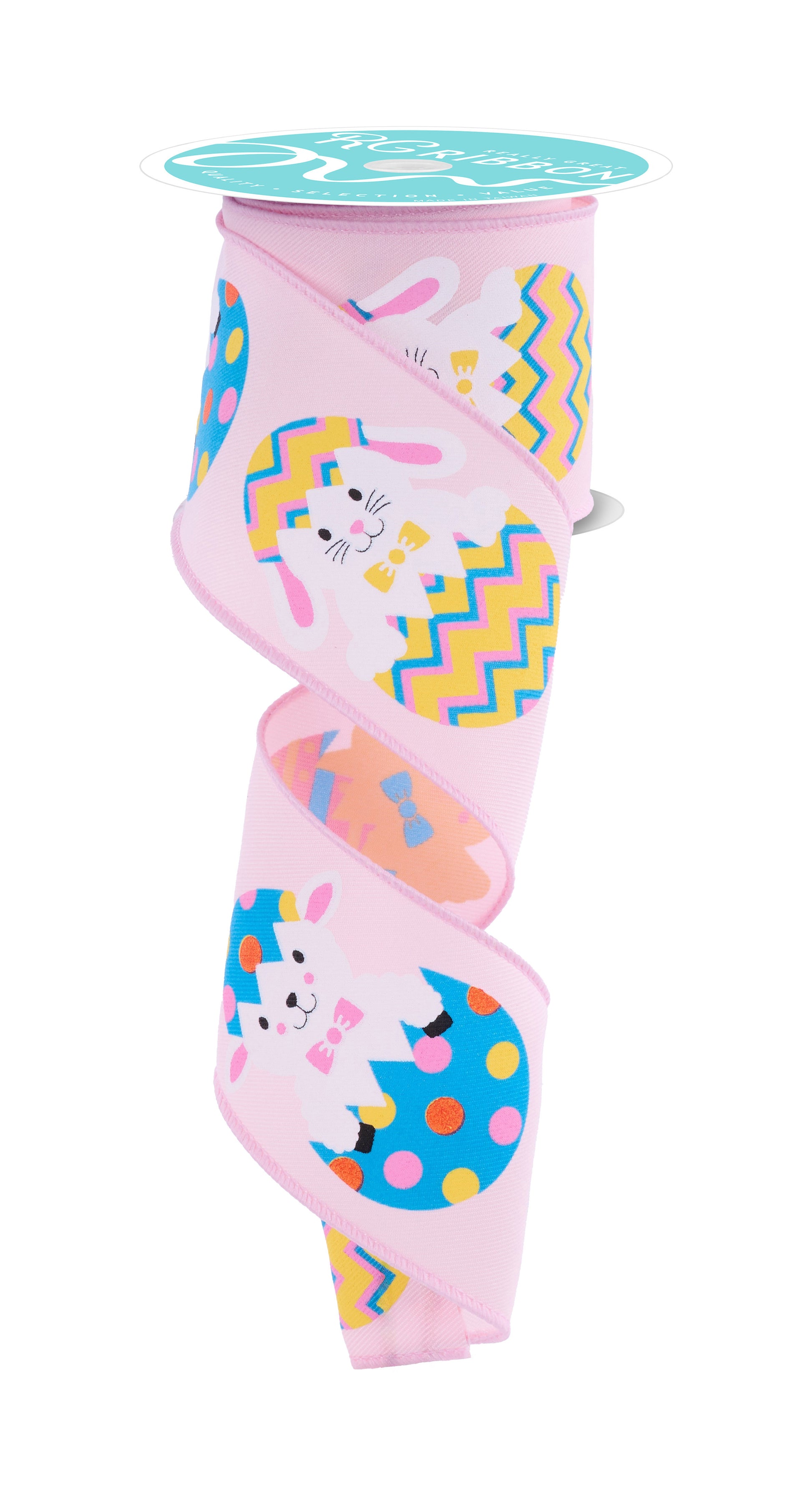 Pale Pink/Multi - Hatching Easter Animals Wired Ribbon - 2.5 Inch x 10 Yards