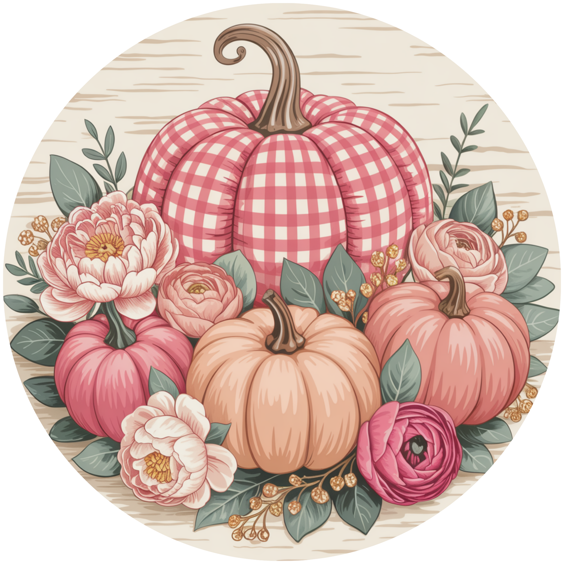 Pink Gingham Pumpkin and Peony Accent Sign - Made in USA