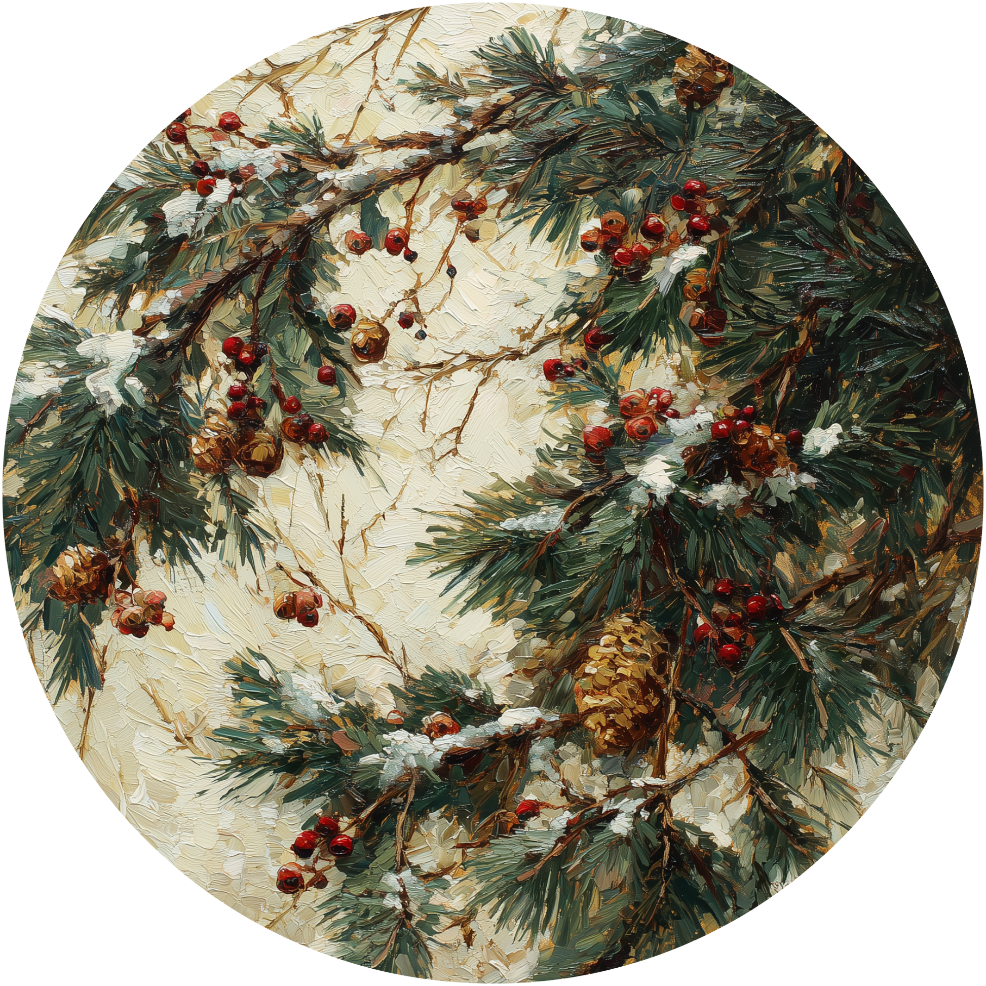 Snowy Pine Boughs with Red Berries and Cones Accent Sign - Made in USA