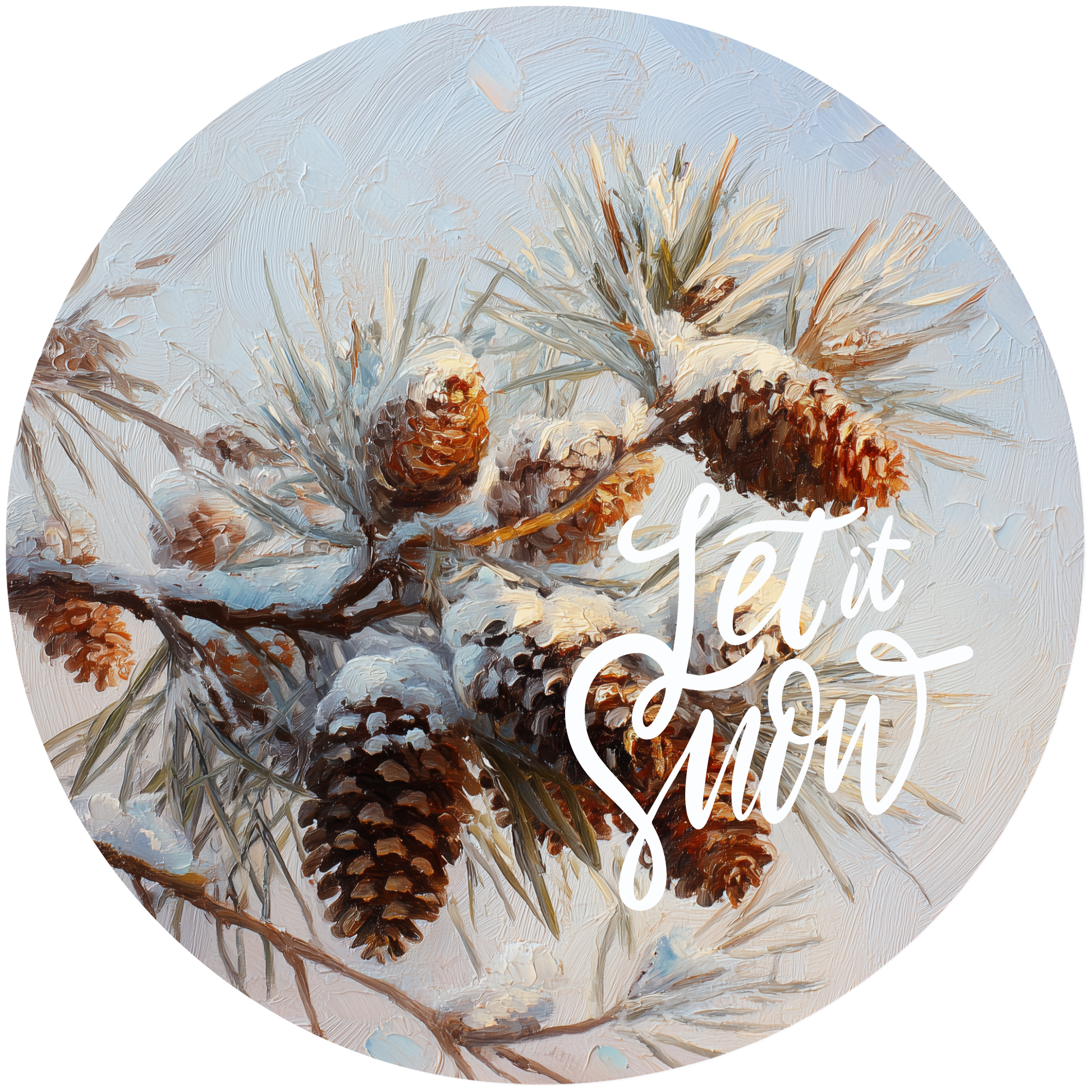 Snowy Pine Cones with Let It Snow Accent Sign - Made in USA