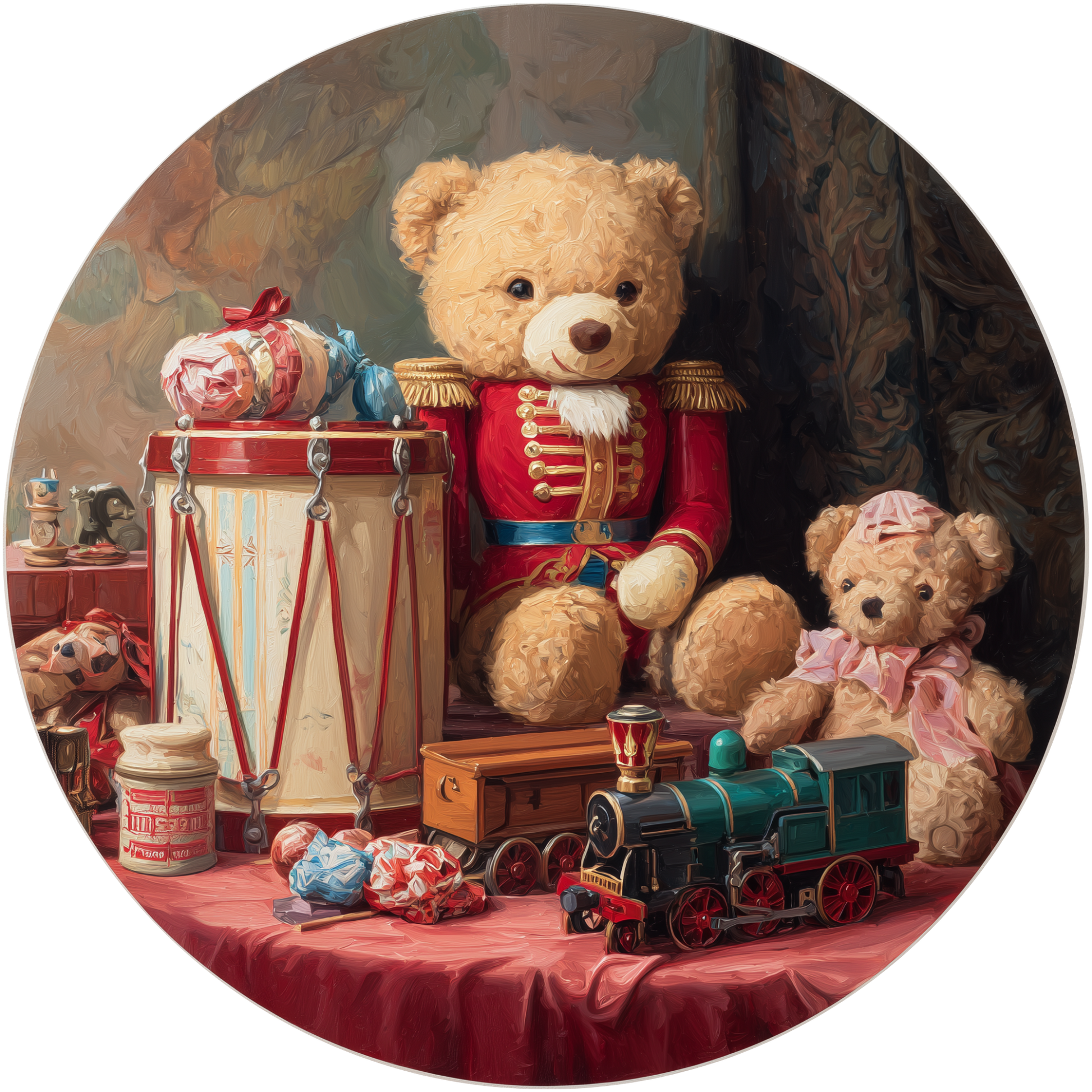 Vintage Christmas Life with Teddy Bear Soldier Drum and Toy Train Accent Sign - Made in USA