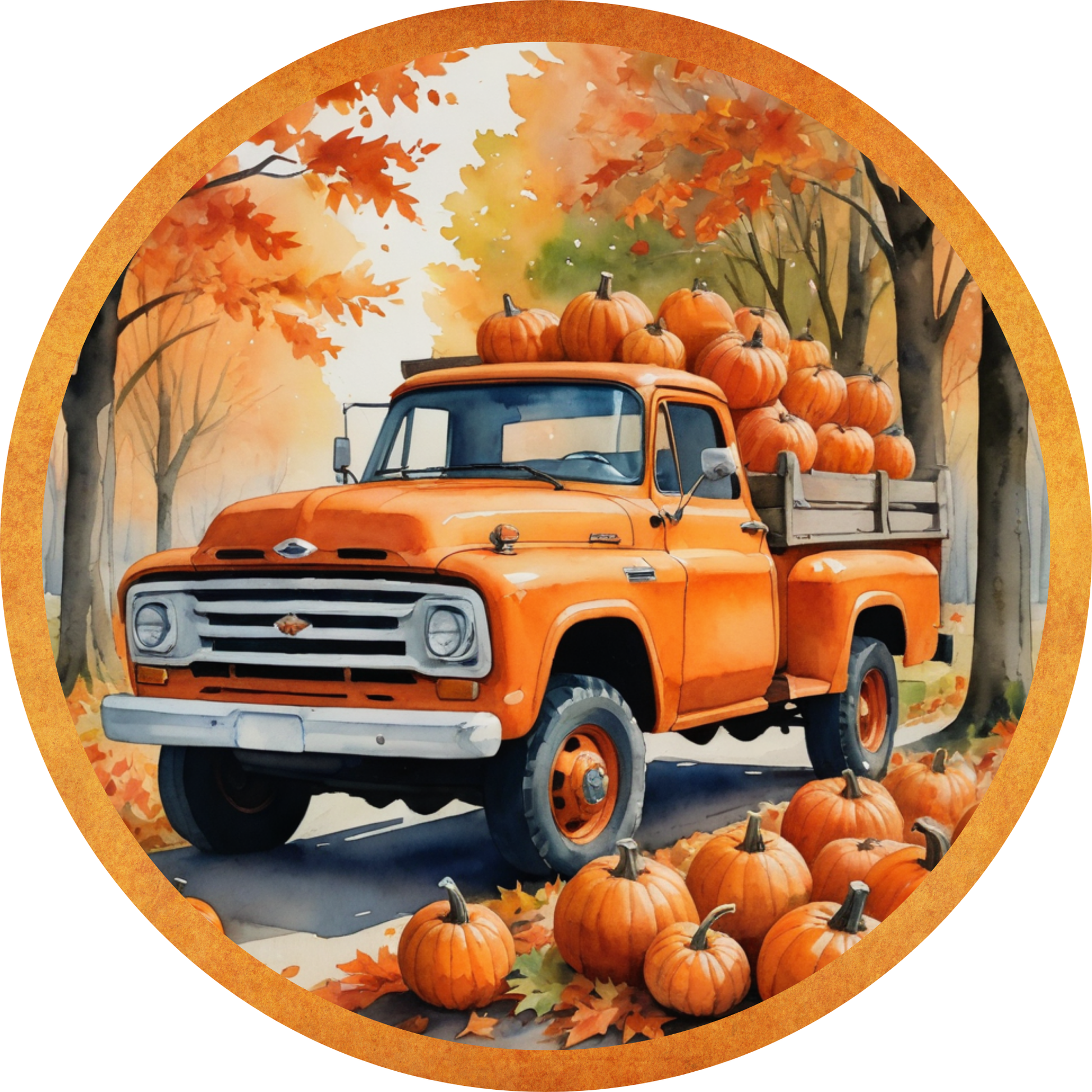 Vintage Truck Overflowing with Pumpkins Accent Sign - Made in USA