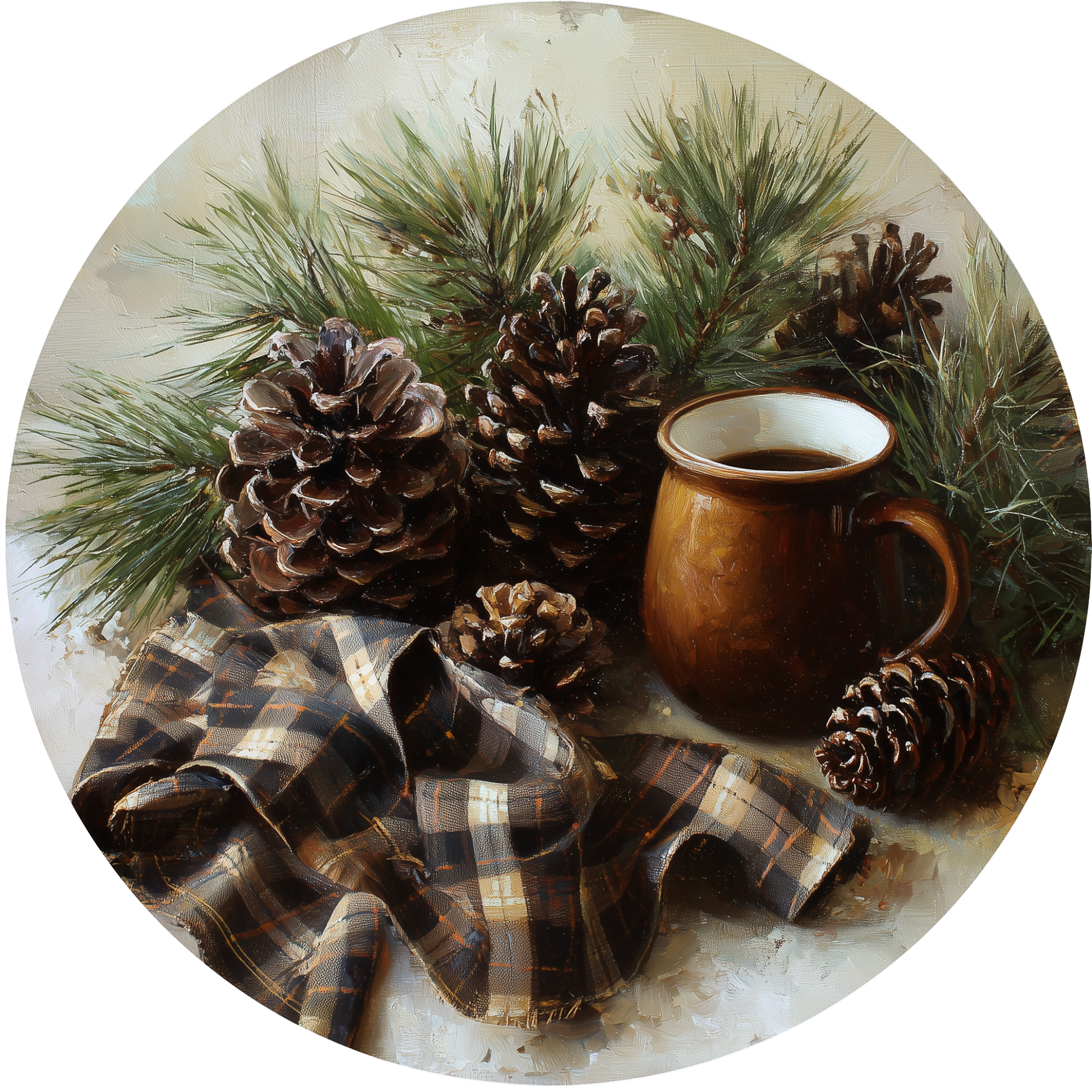 Warm Still Life with Coffee Mug Pine Cones Accent Sign - Made in USA