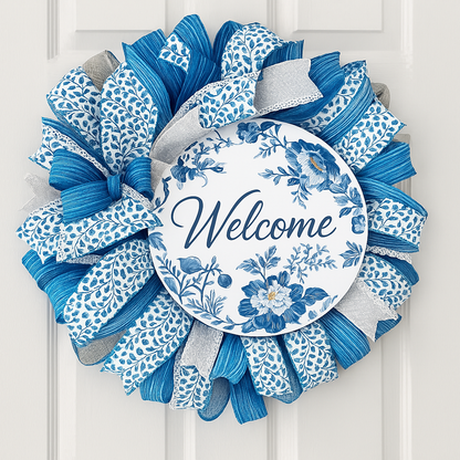 Welcome Blue Chinoiserie Accent Sign - Made In USA