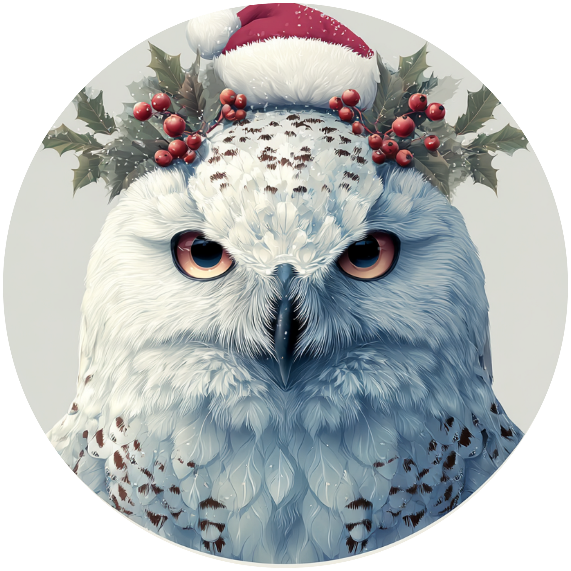 White Snowy Owl Wearing Santa Hat and Holly Wreath Accent Sign - Made in USA