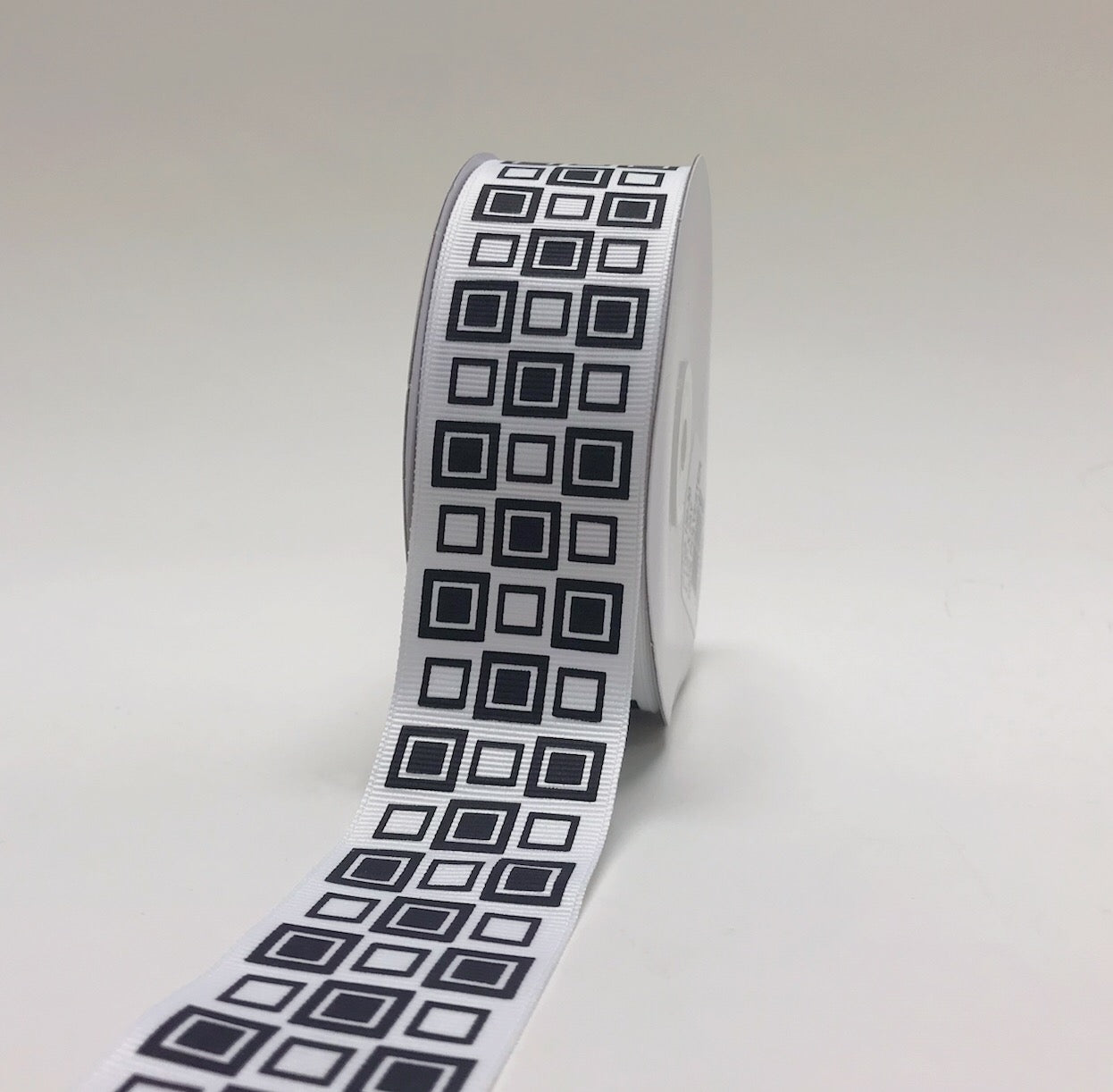 White - Square Design Grosgrain Ribbon ( 1-1/2 Inch | 25 Yards )