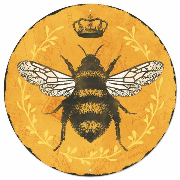 12 in Dia - Black Mustard Soft Yellow - Metal Queen Bee Sign