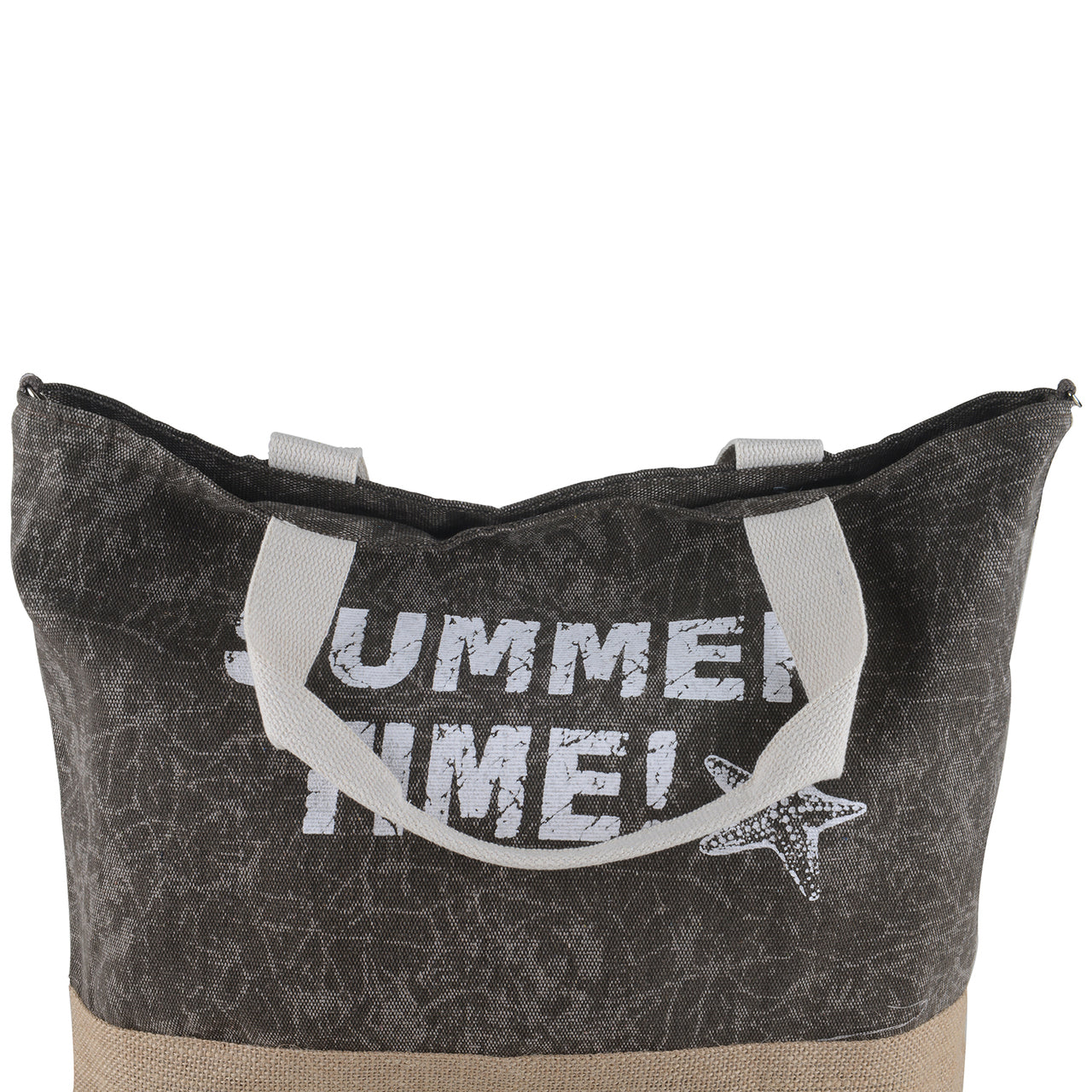 21 in. x 16 in. Grey Summer Time Beach Tote Bag for Women Swim Pool Bag Large Tote