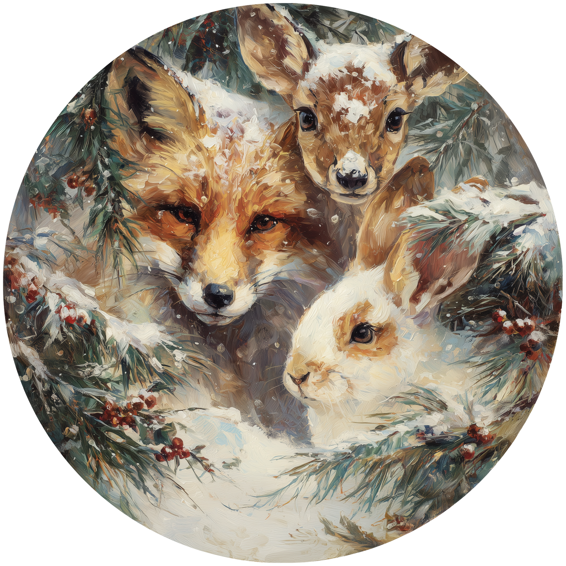 Cozy Winter Fox Fawn and Rabbit Accent Sign - Made in USA