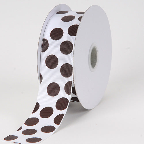 Grosgrain Ribbon Jumbo Dots White with Brown Dots ( W: 1 - 1/2 Inch | L: 25 Yards )