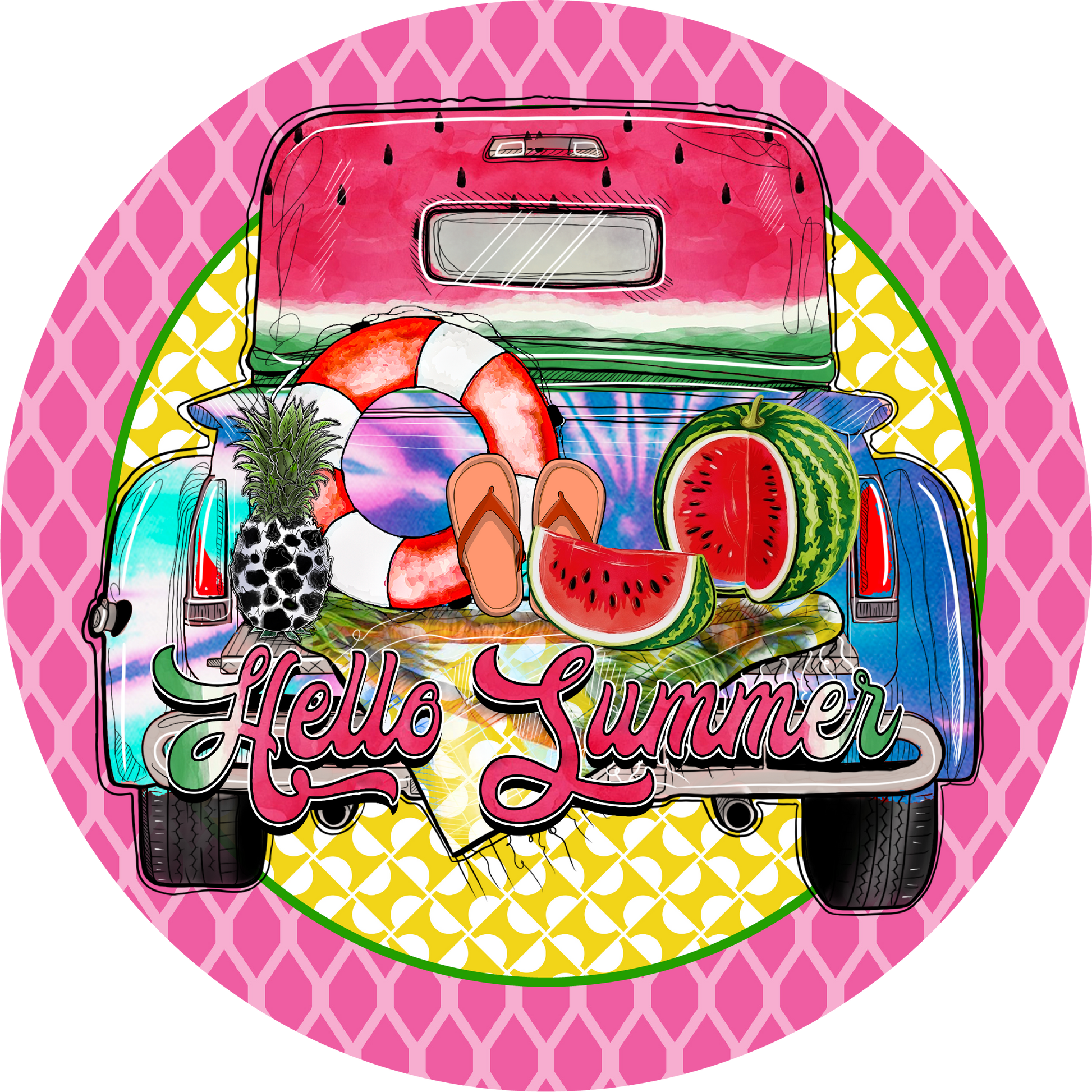Hello Summer Truck with Fruits Accent Sign - Made in USA