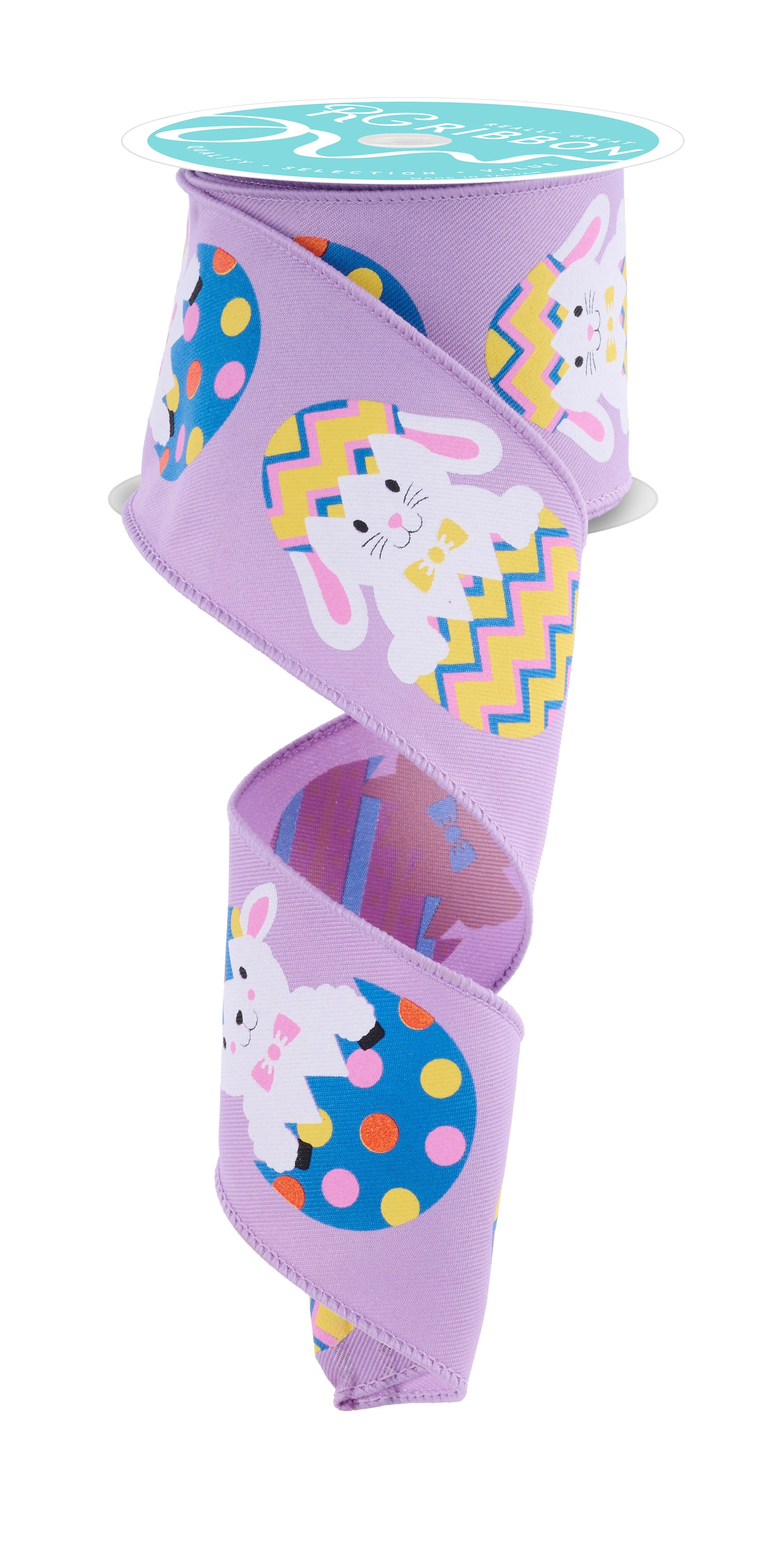 Lavender/Multi - Hatching Easter Animals Wired Ribbon - 2.5 Inch x 10 Yards