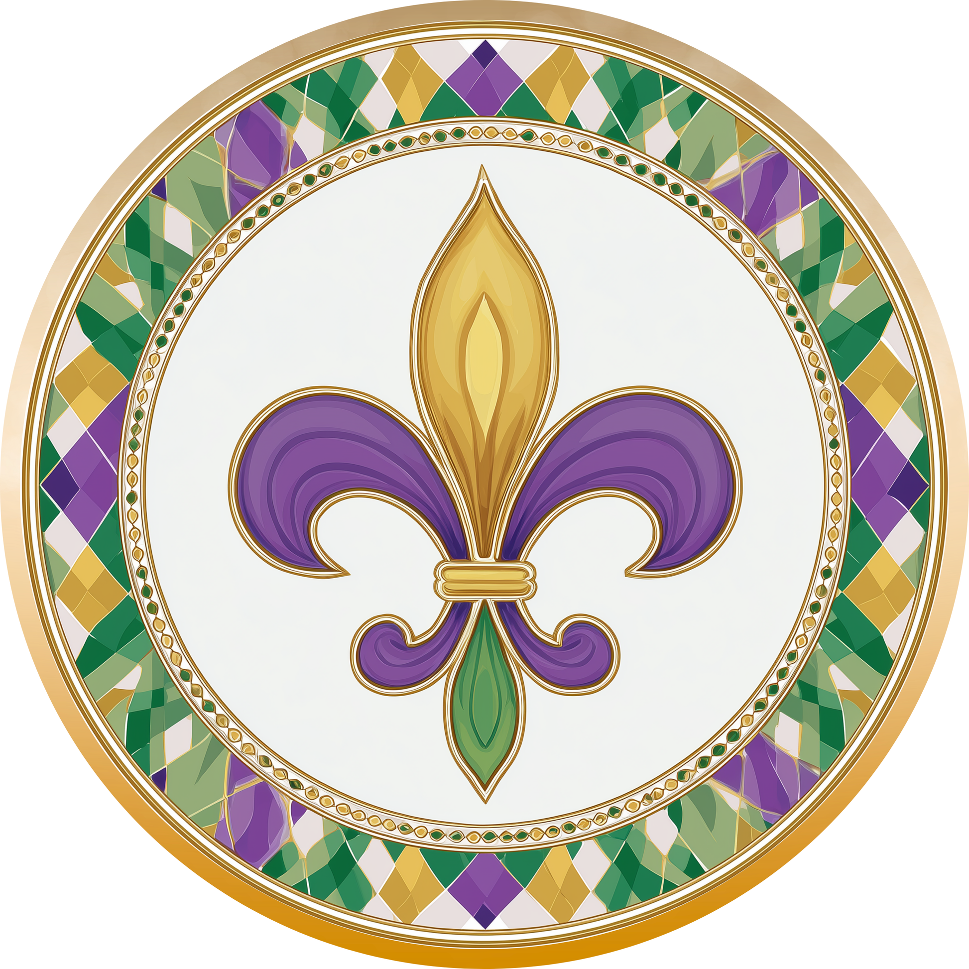 Mardi Gras Fleur-de-Lis with Harlequin Border Accent Sign - Made in USA