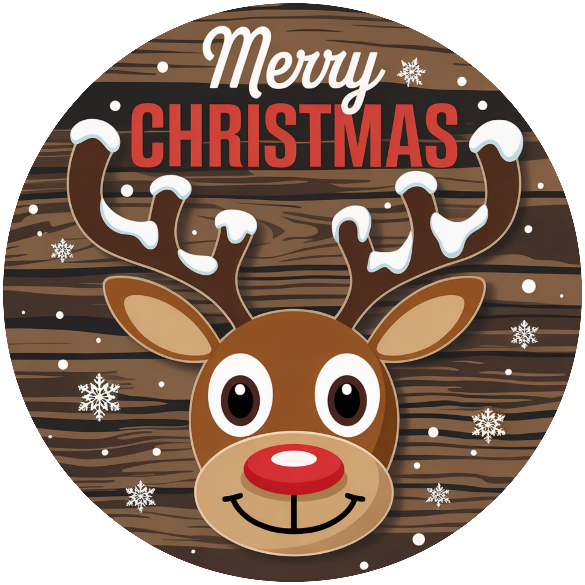 Merry Christmas Rudolph Reindeer on Rustic Wood Accent Sign - Made in USA