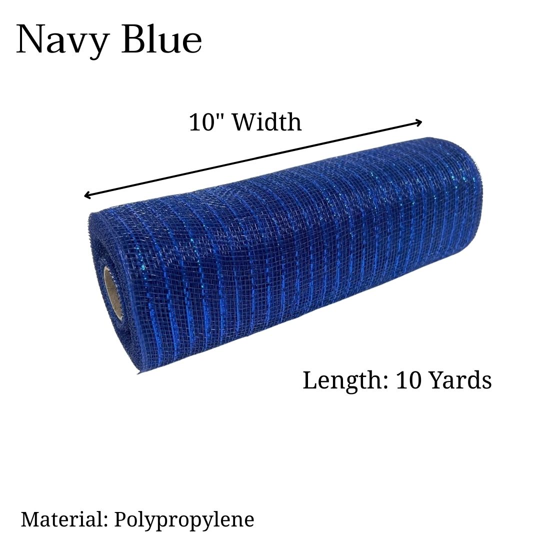 Navy Blue - Deco Mesh Metallic Stripes - ( 10 Inch x 10 Yards )