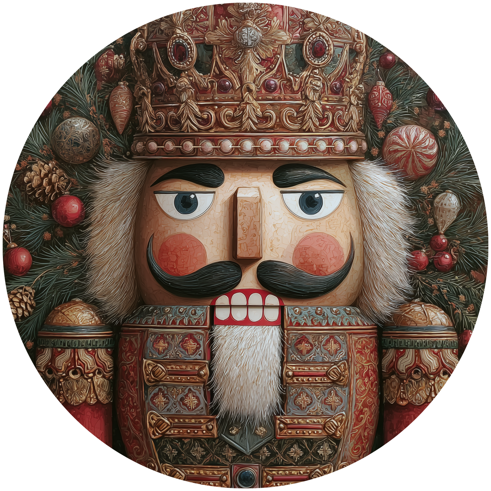 Nutcracker King Portrait with Crown and Christmas Wreath Accent Sign - Made in USA