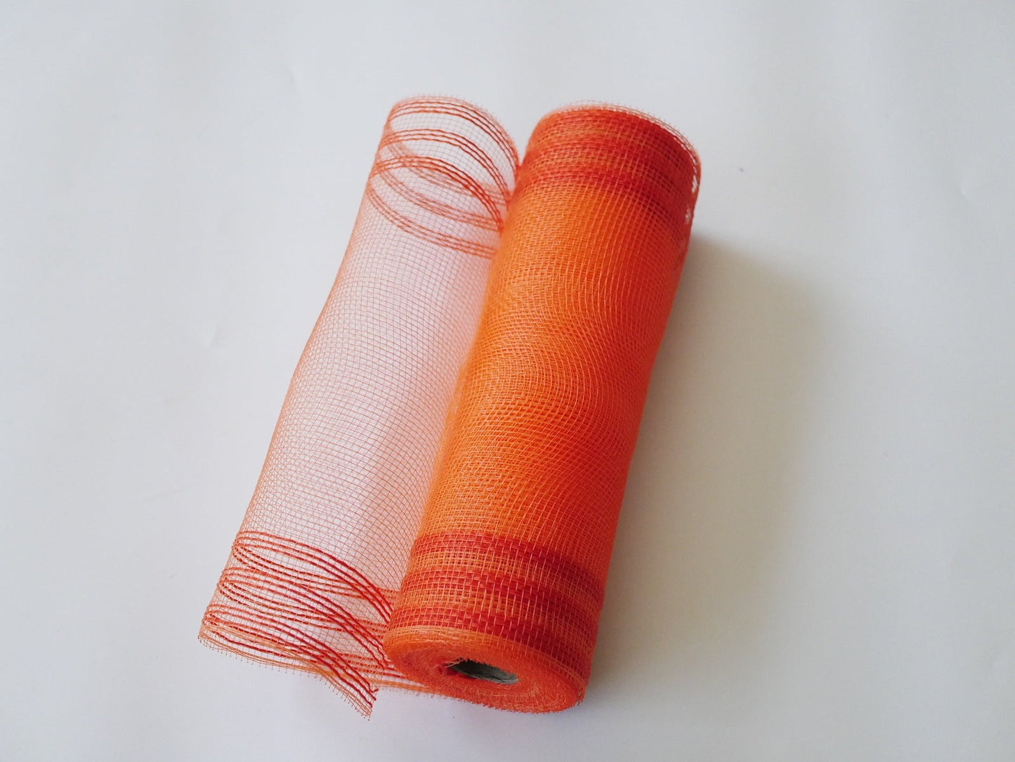Orange with Orange Stripes Holiday Deco Mesh - ( 10 Inch x 10 Yards )